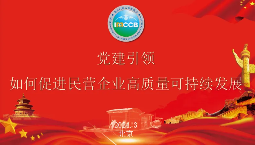 2024年3月27日,北京内蒙古企业商会三月主题活动成功召开,活动以“探讨党建引领如何促进民营企业高质量可持续发展”为主题,在商会“蒙商之家”成功举办。活动旨在通过党建学习、分享党建引领案例,深化商会会员对党建工作在民营企业发展中的重要作用认识,为企业提供可持续发展策略与思路,促进企业间经验交流与合作。